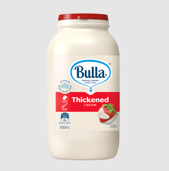 Bulla Cream Thickened 600ml is a premium, versatile cream that is perfect for adding richness, creaminess, and a smooth texture to your favorite recipes. Whether you're preparing a savory sauce, creamy soup, decadent dessert, or whipping up a delicious topping for cakes and pies, this thickened cream from Bulla is the ideal choice to enhance your cooking and baking.