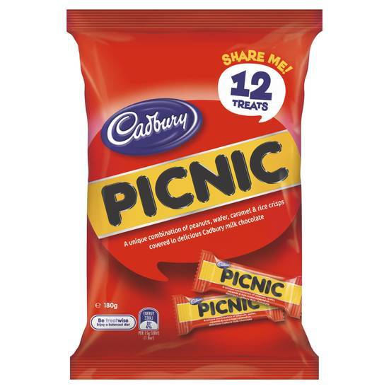Cadbury Picnic is a delicious combination of crunchy peanuts, crispy wafer, chewy caramel, and juicy dried grapes, all covered in a layer of rich Cadbury milk chocolate. The unique texture and mix of flavors create a satisfying and indulgent snack. This share pack contains 12 individually wrapped bars, making it perfect for sharing with family and friends or enjoying on the go.
