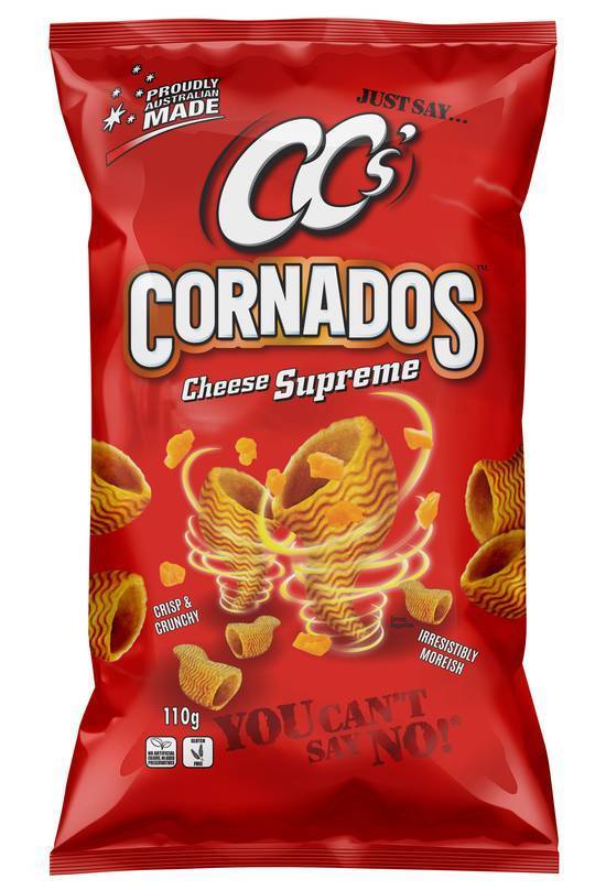 CC's Cornados Corn Chips Cheese Supreme 110g bring a bold and cheesy experience with every bite, offering a deliciously crunchy texture and satisfying flavor. Whether you’re snacking alone, sharing with friends, or serving at a gathering, these chips are the perfect choice to satisfy your cravings.