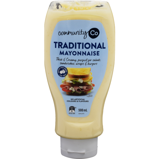 Elevate your meals with the deliciously creamy taste of Community Co Traditional Mayonnaise 500ml—your go-to condiment for flavor-packed dishes!
