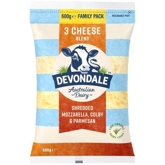 - Product Name: Devondale Three Cheese Shredded Mozzarella, Colby, and Parmesan