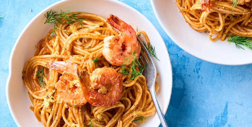 Add the Prawns: Gently toss the cooked prawns into the pasta, allowing everything to heat through and mix well.