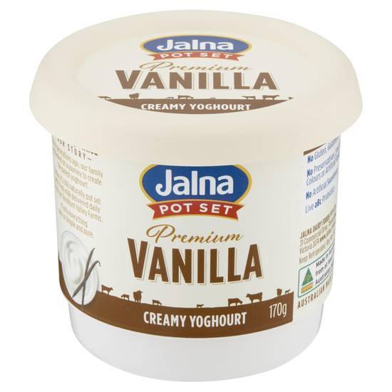 Jalna Premium Vanilla Yoghurt is a pot-set yoghurt made from fresh dairy milk, live probiotic cultures, and natural vanilla flavor. This 170g serving offers a creamy texture and a rich vanilla taste, making it a popular choice for both standalone consumption and as a complement to various desserts.