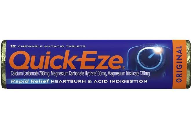Quick-Eze Original is a fast-acting antacid designed to provide quick relief from heartburn and indigestion. Each chewable tablet works to neutralize stomach acid, helping to ease discomfort and restore digestive balance. With a refreshing, classic taste, Quick-Eze is a convenient solution for those experiencing acid-related discomfort. It is perfect for on-the-go relief, whether at home, work, or traveling.