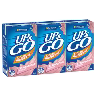 Sanitarium UP&GO Strawberry 6x250ml is the perfect solution for those looking for a quick, nutritious, and tasty start to the day!