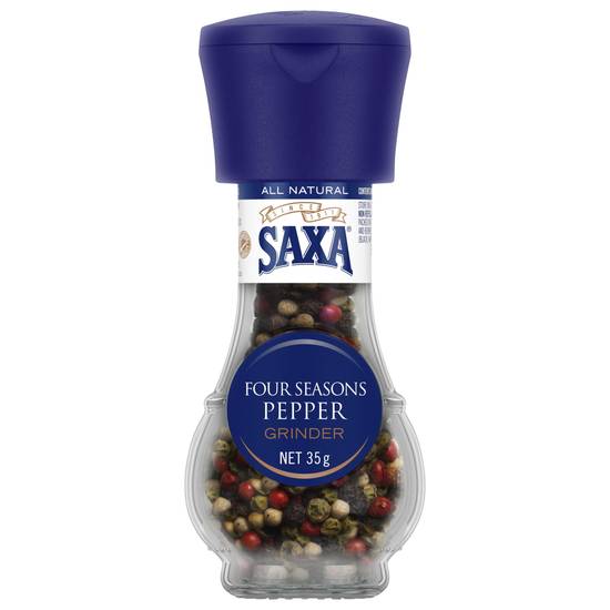 SAXA Four Seasons Pepper Grinder is a premium blend of black, white, green, and pink peppercorns, offering a rich and complex flavor profile. This versatile seasoning enhances a wide range of dishes with its balanced heat, subtle fruitiness, and aromatic depth. The built-in grinder ensures freshly ground pepper for maximum flavor and aroma in every meal.