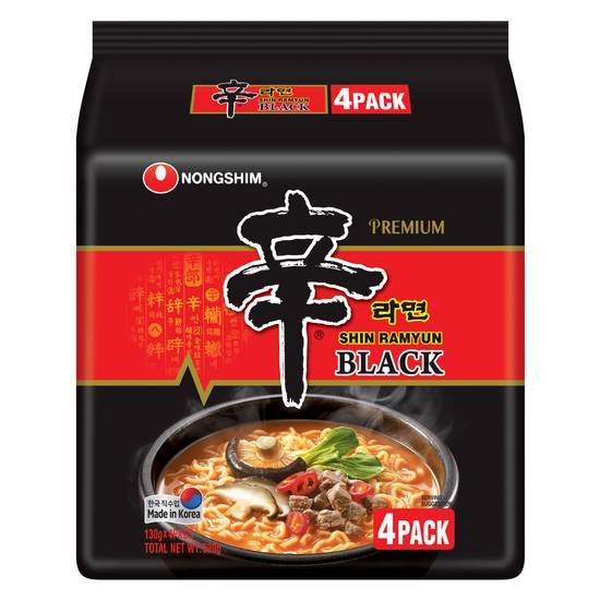 Shin Ramyun Black is a premium version of the classic Shin Ramyun, offering an even richer and more intense flavor. Featuring a double-soup base with deep beef broth, garlic, and black pepper, this instant noodle pack delivers a bold and satisfying taste experience. The addition of large vegetable flakes and dehydrated beef enhances the overall depth of flavor, making it a favorite for ramen lovers who enjoy a hearty and spicy meal.