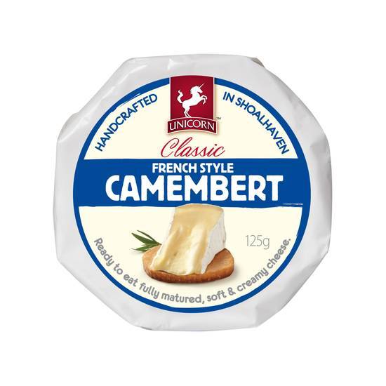 Unicorn Classic French Style Camembert offers a traditional, authentic taste of French cheesemaking in every bite. Its mild, creamy flavor and velvety texture make it a perfect addition to any cheese board, sandwich, or baked dish. Whether you're a cheese enthusiast or a casual snacker, this Camembert delivers a satisfying, indulgent experience that will elevate your meals and special occasions.