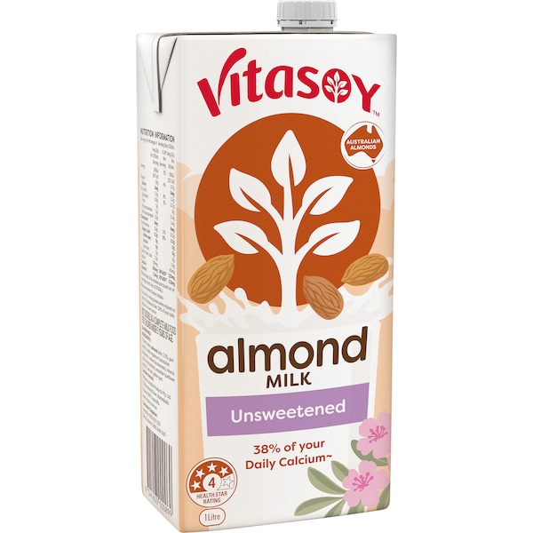 Vitasoy Unsweetened Almond Milk 1L is a plant-based beverage made from Australian-grown whole almonds. It is naturally free from gluten, dairy, lactose, cholesterol, and soy, making it suitable for vegans and vegetarians. Each 250mL serving provides 38% of the recommended daily intake of calcium and is a natural source of vitamin E. With only 50 calories per serving and no added sugar, it is a low-calorie alternative to dairy milk.