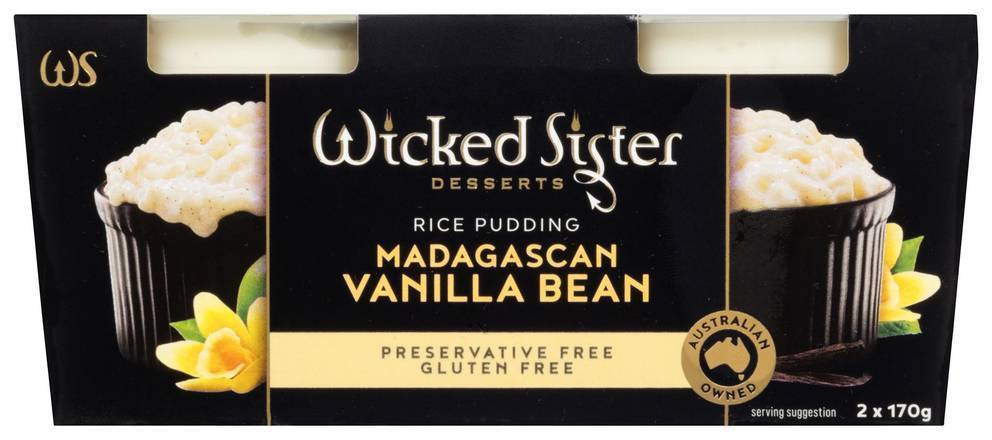 Wicked Sister Vanilla Bean Rice Pudding is a luxurious, creamy dessert that combines the rich flavor of vanilla bean with the comforting texture of soft rice pudding. Made with high-quality ingredients, this indulgent treat is perfect for those who crave a deliciously sweet, satisfying dessert. The pack contains two individual 160g cups, making it easy to enjoy a single serving or share with someone special.